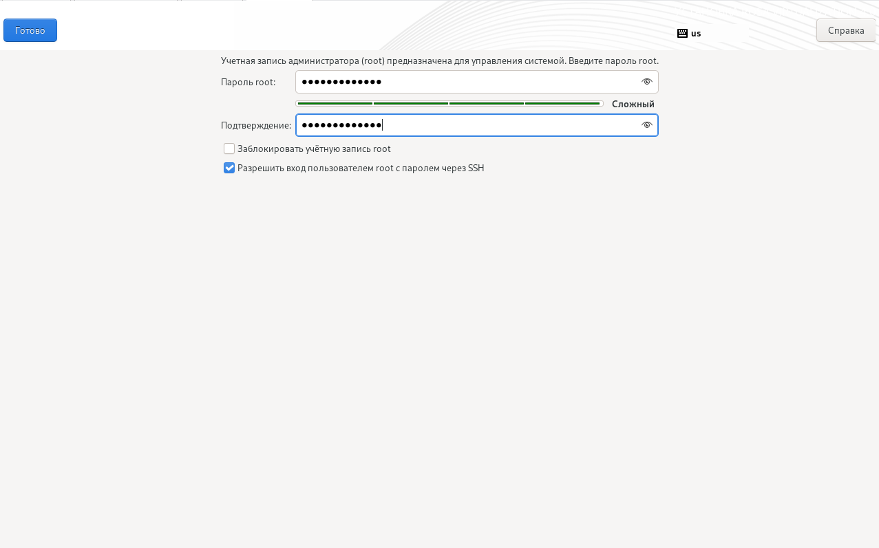 Рисунок 14 ‒ Ввод и подтверждение пароля учетной записи root