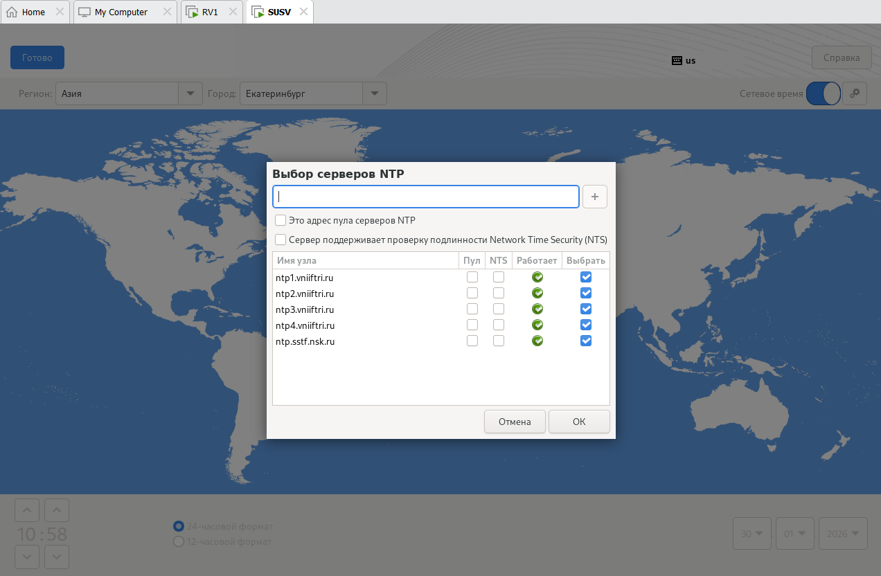 Примечание – Для настройки даты/времени с использованием серверов NTP требуется настроенное сетевое подключение (настройка осуществляется в секции "Имя сети и узла"), обеспечивающее сетевую доступность серверов NTP.
