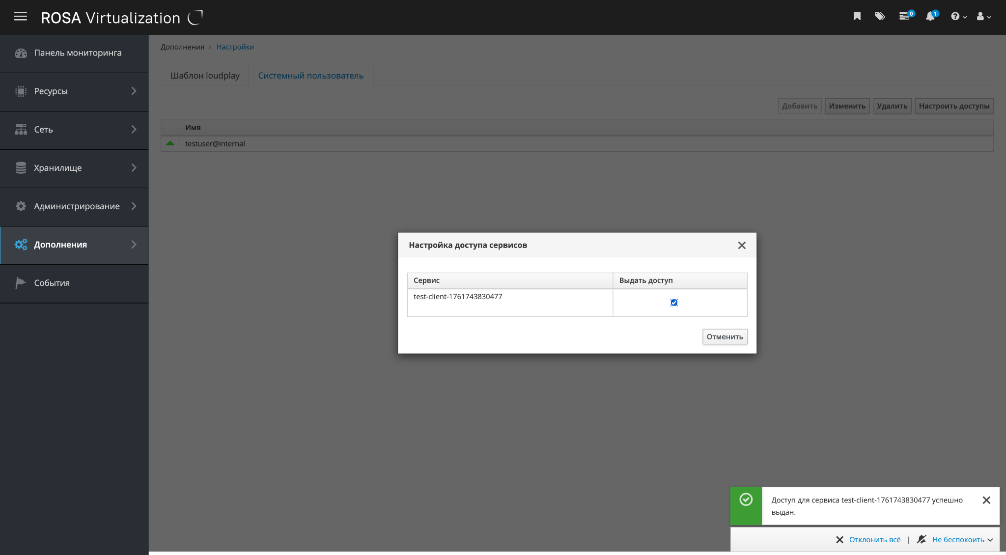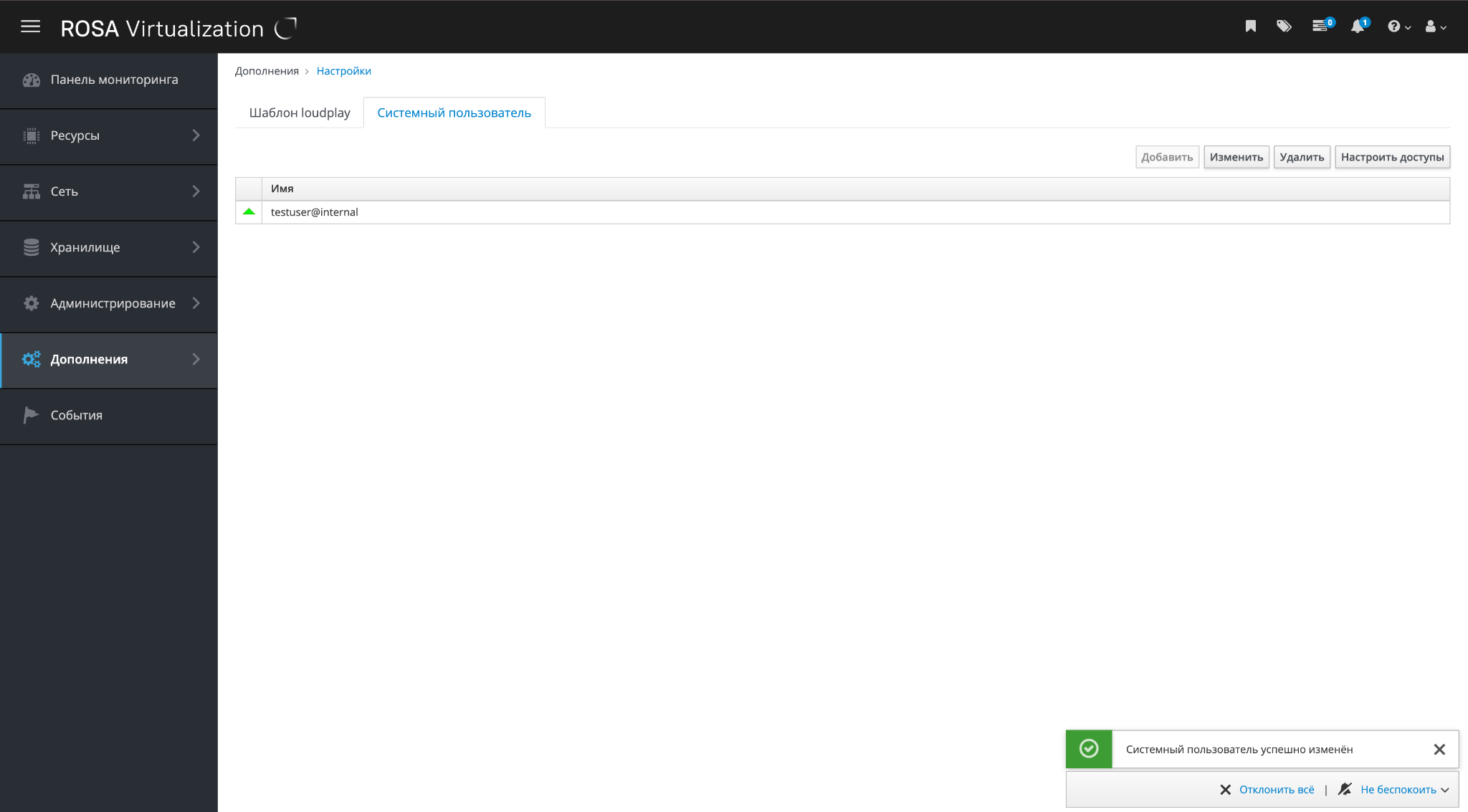 Пользователь будет добавлен к списку пользователей, авторизованных для работы с РОСА Виртуализация (рисунок 112).