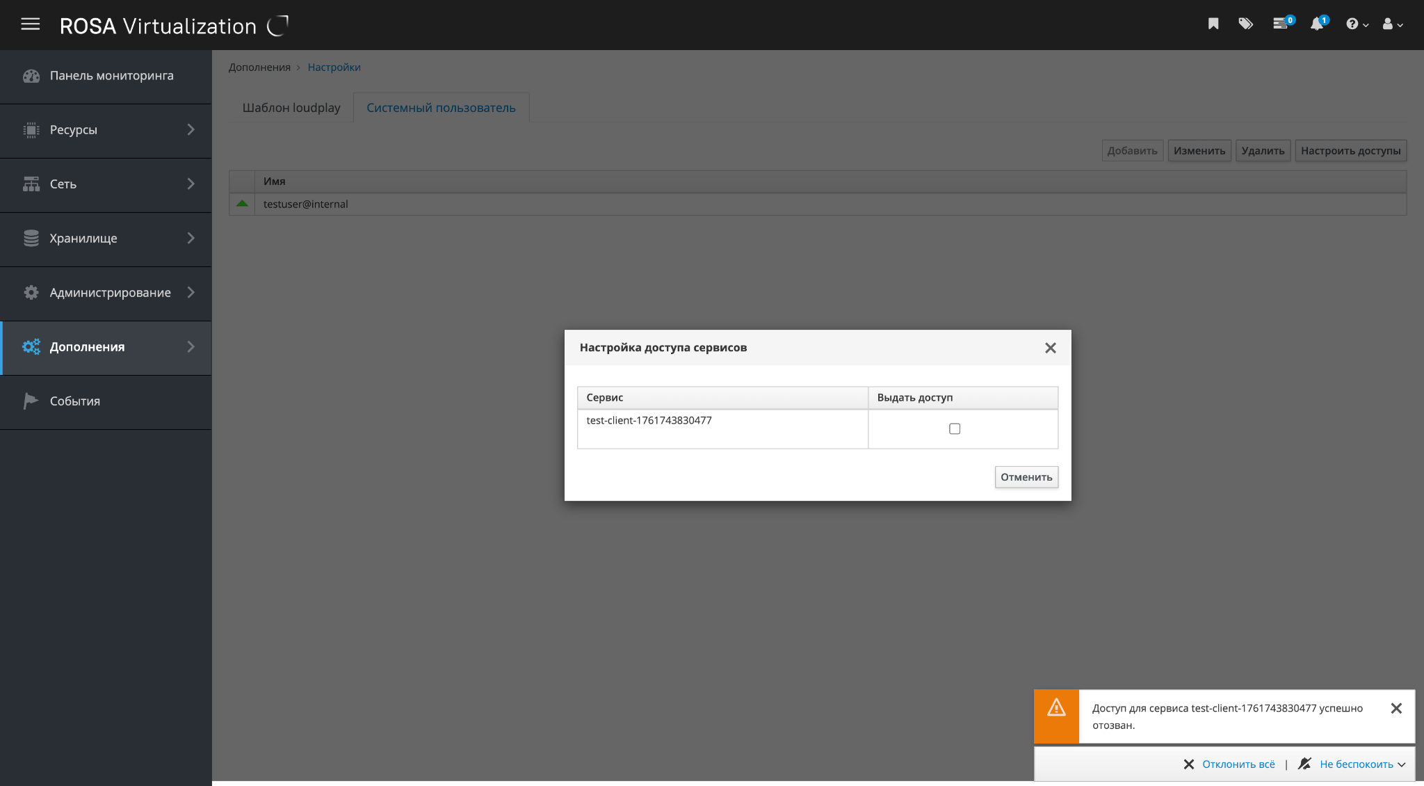 Рисунок 97 – Окно "Настройка доступа сервисов"