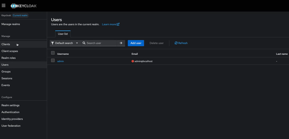 Управление пользователями в Keycloak производится в разделе "Users" (рисунок 165).