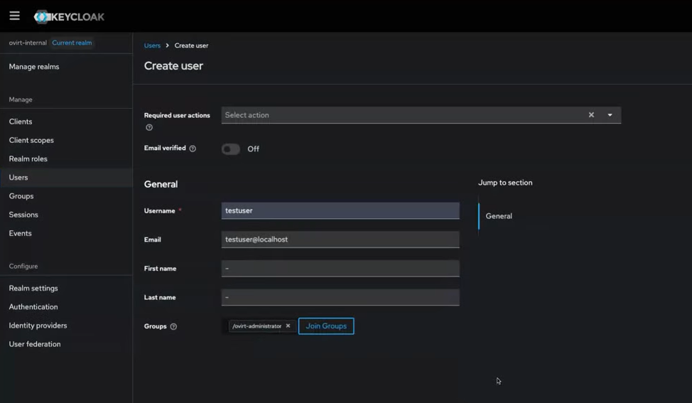 - Groups — (опционально) при нажатии на Join Groups позволяет добавить пользователя в группы.