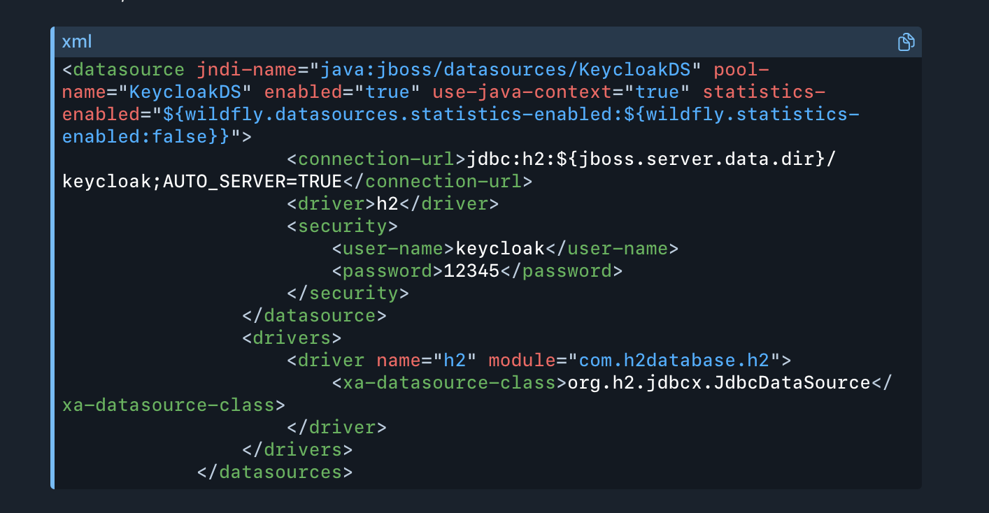 Примечание – Пароль указывается в конфигурационном файле standalone.xml.