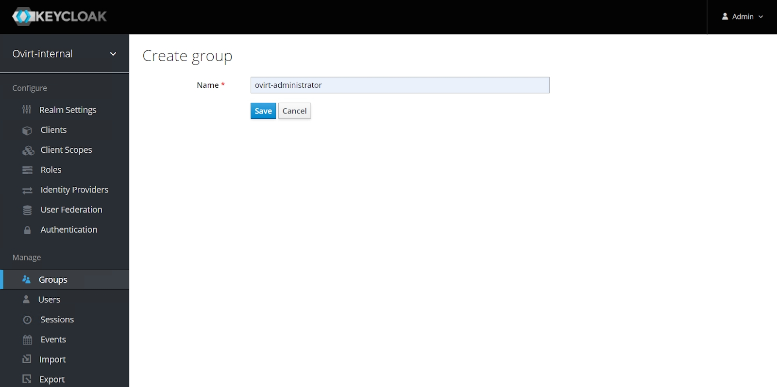 В разделе "Groups" нажать New, ввести имя группы ovirt-administrator (рисунок 125).