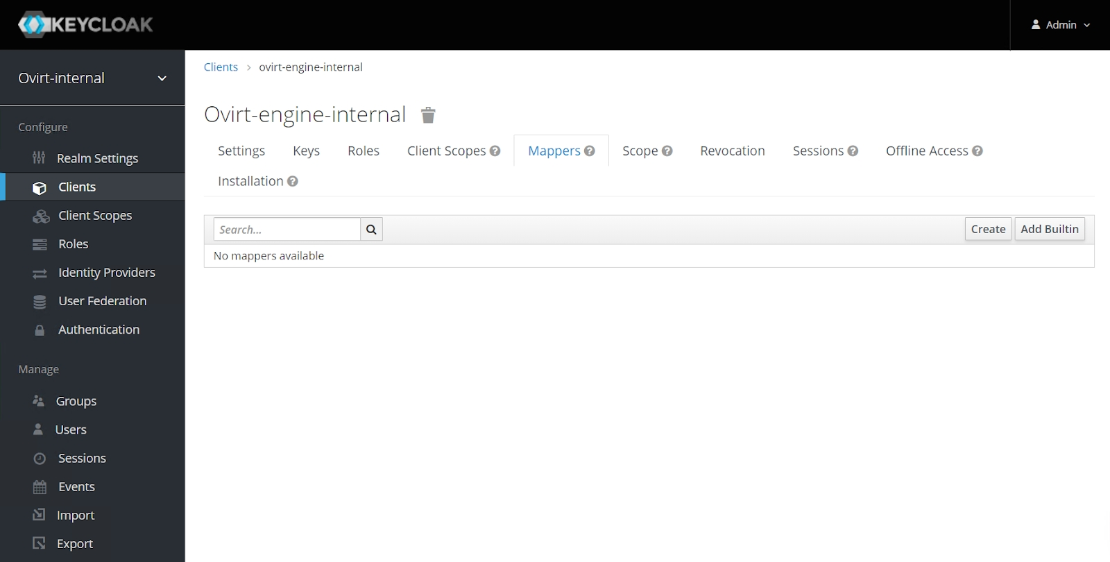 - перейти на вкладку "Mappers" раздела "Clients" и нажать кнопку