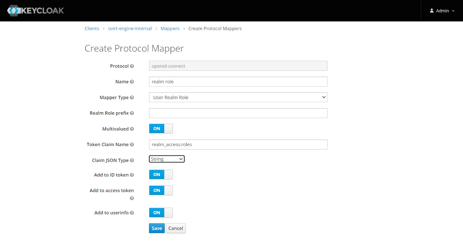 User Realm Role; - Token Claim Name:
