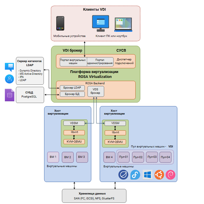 Взаимодействие клиента VDI с Системой осуществляется с помощью брокера VDI, в роли которого выступает СУСВ (Система управления средой виртуализации).