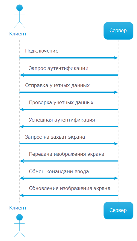 Рисунок 5 ‒ Взаимодействие между клиентом и сервером при использовании протокола VNC