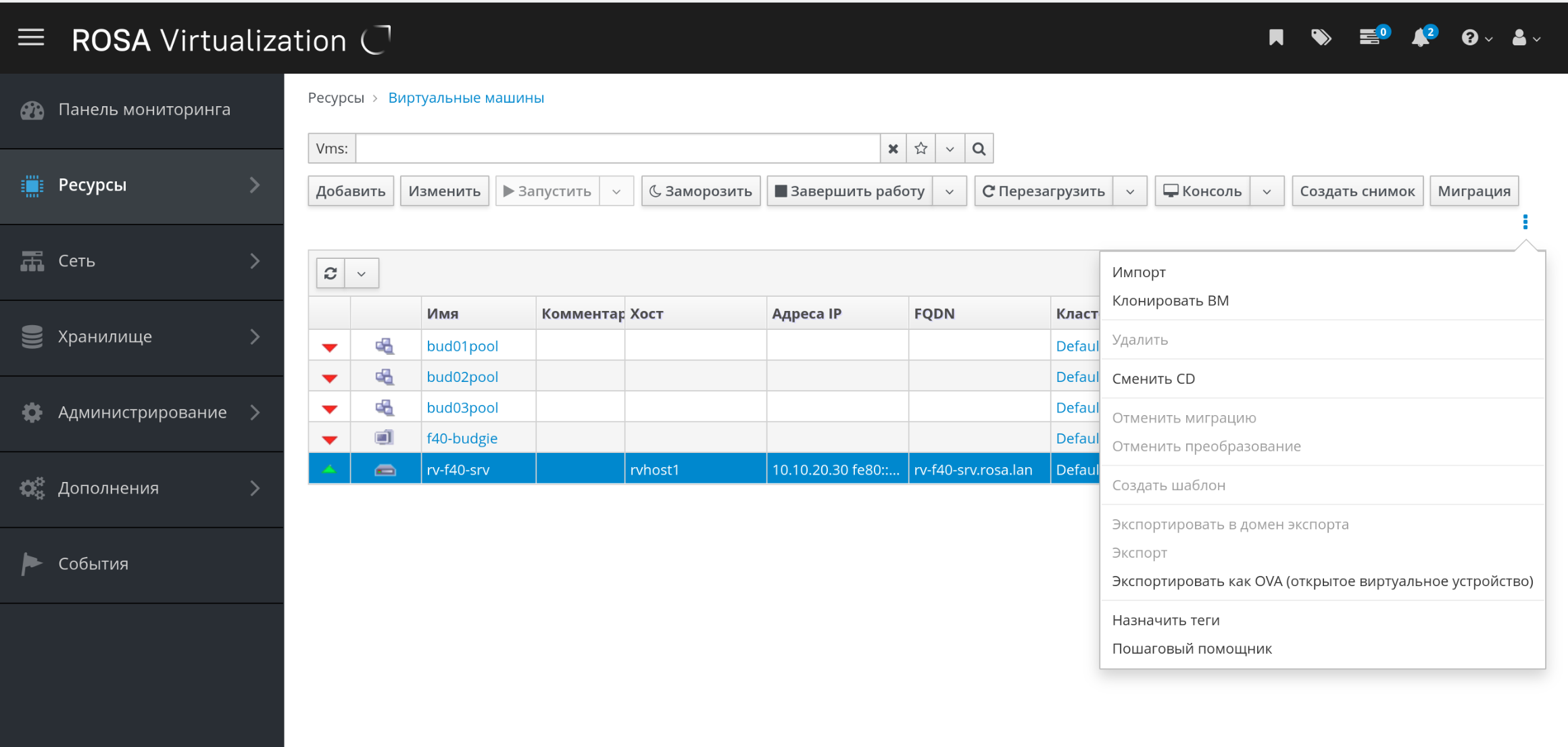 - Нажмите "Ресурсы → Хосты" и выберите хост.