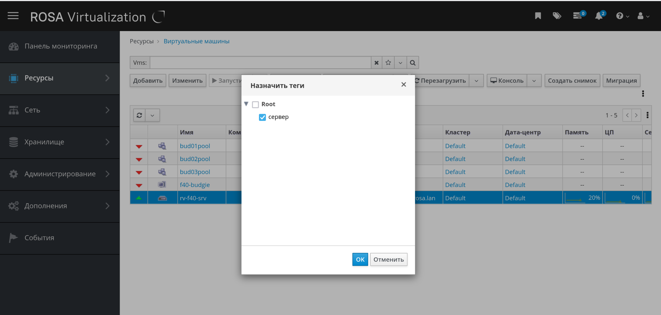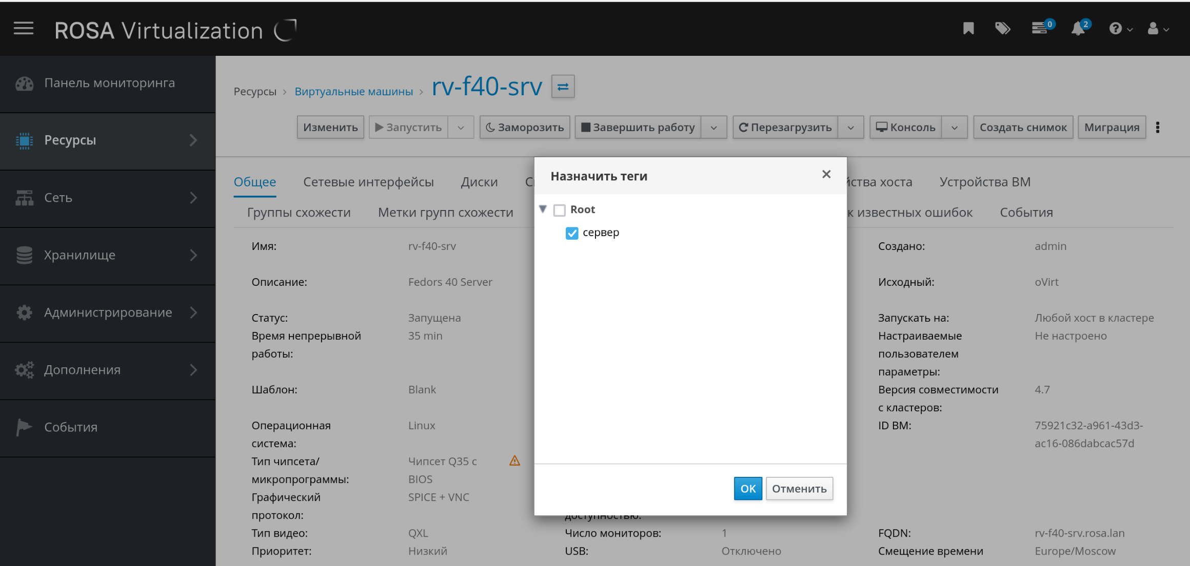 Рисунок 61 ‒ Назначение тега виртуальной машине