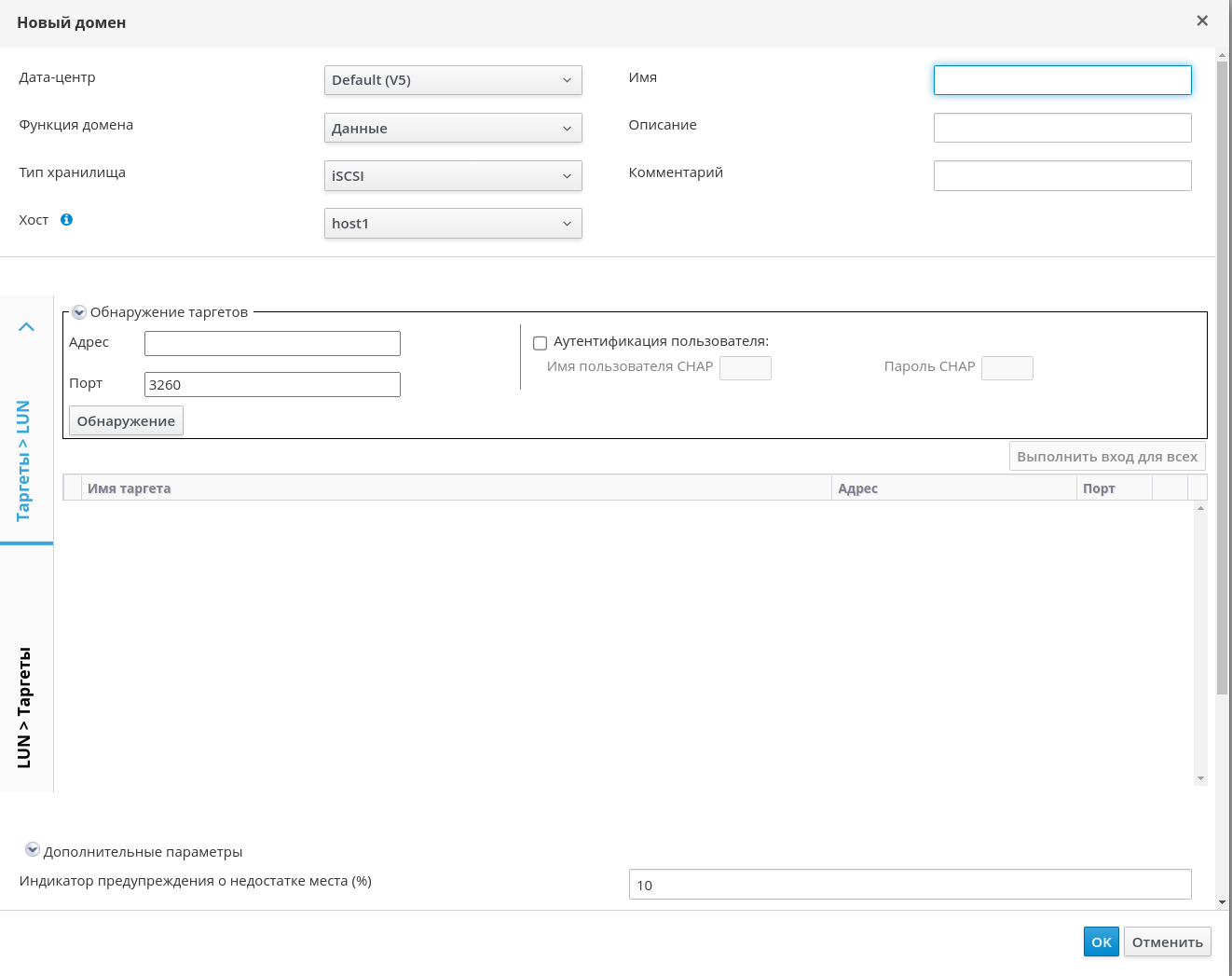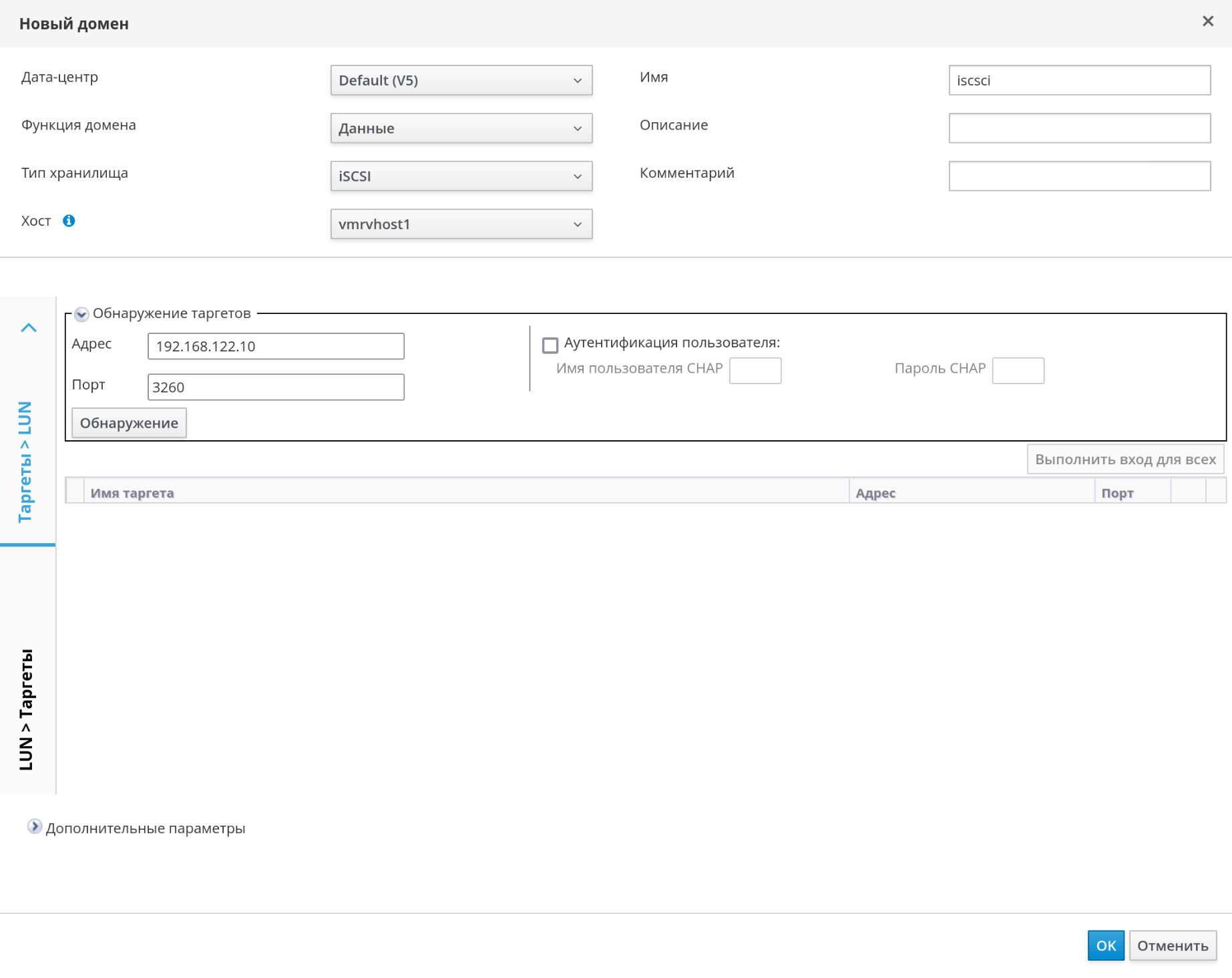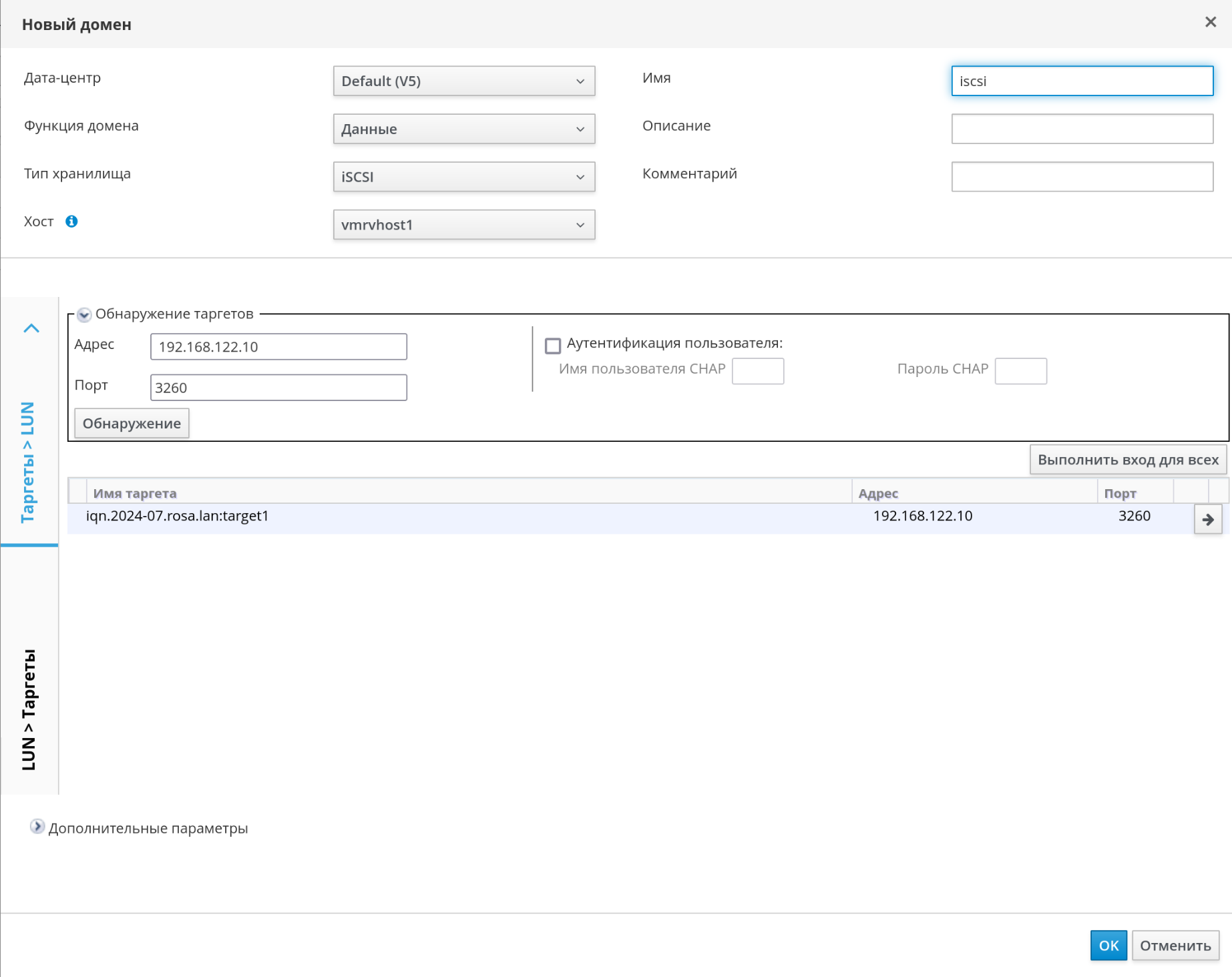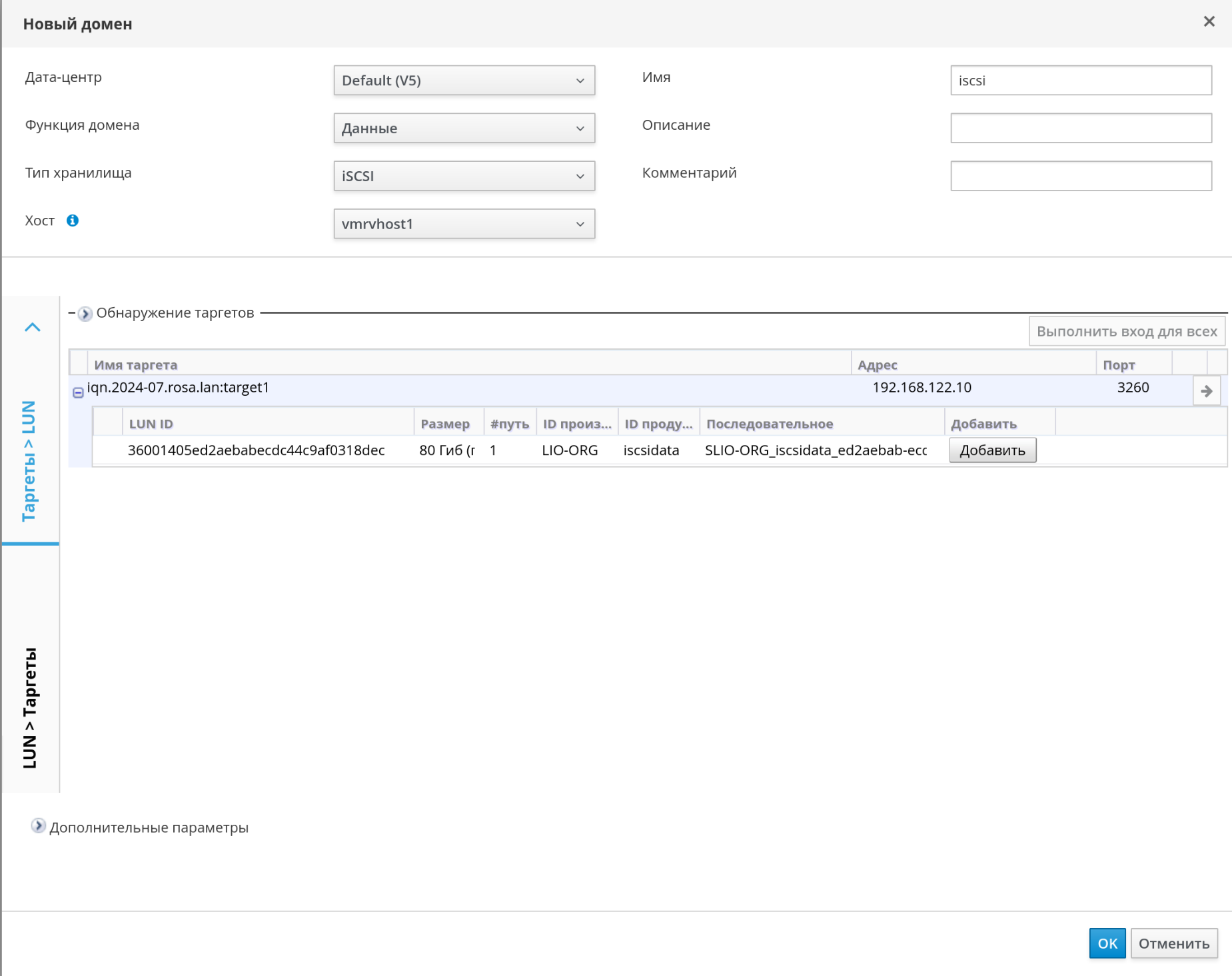 Рисунок 141 ‒ Добавление цели iSCSI