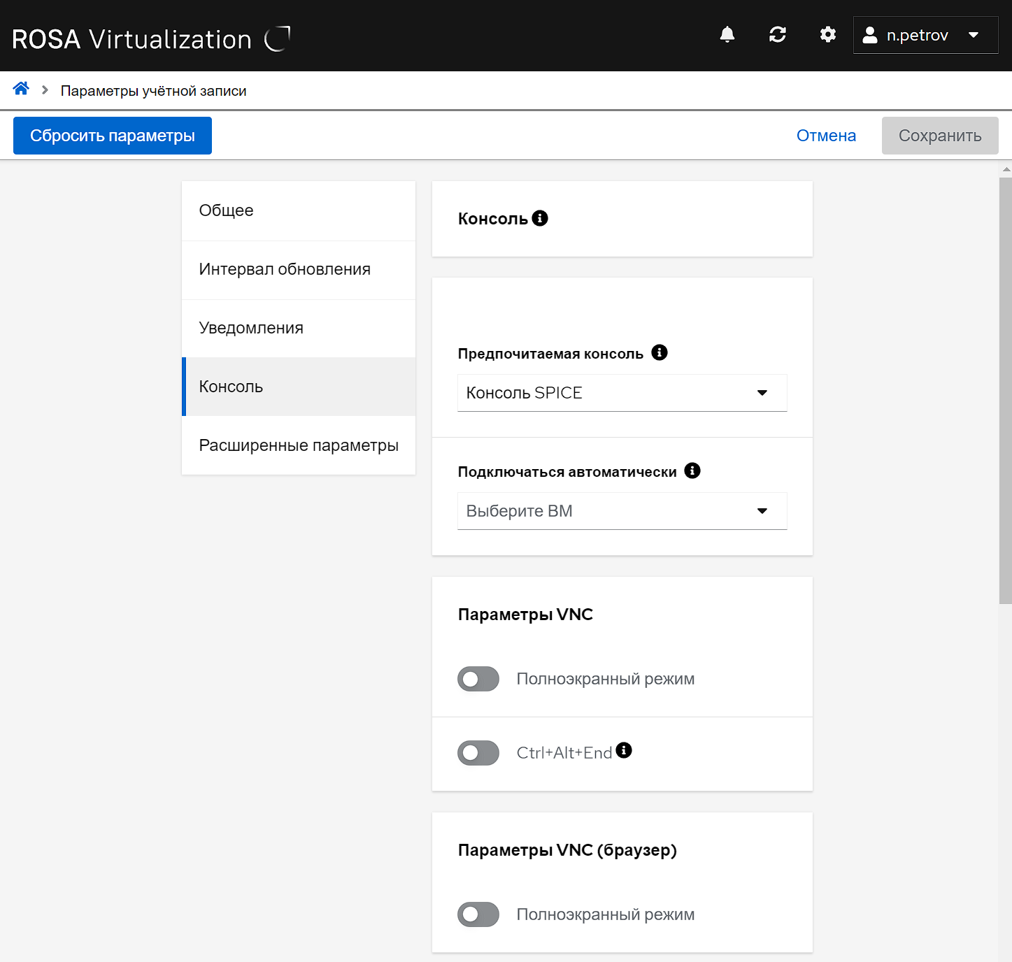 - Параметры ‒ ключ SSH для подключения к Порталу ВМ с помощью серийной консоли (данная опция доступна для пользователей с возможностью администрирования);