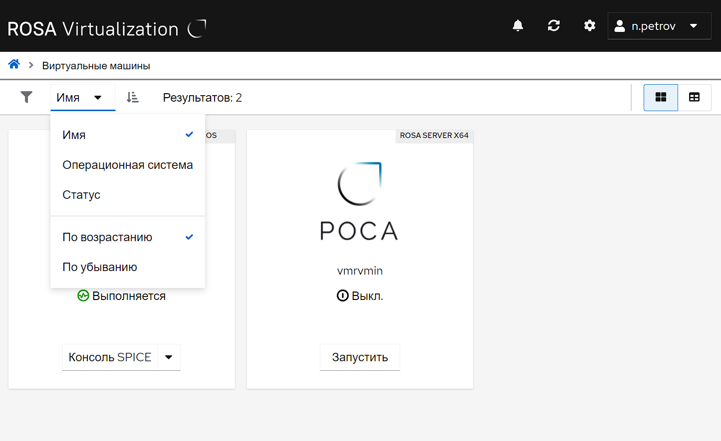 Можно настроить отображение доступных ВМ в виде плитки или в виде списка (рисунок 24).