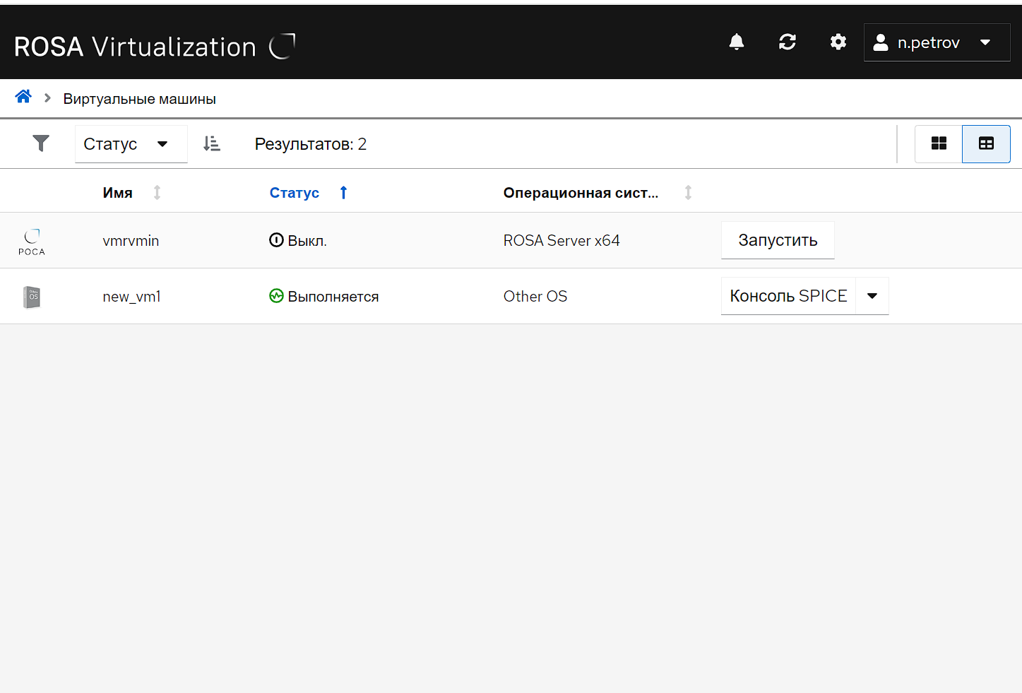 Рисунок 24 ‒ Панель ВМ — отображение ВМ в виде списка