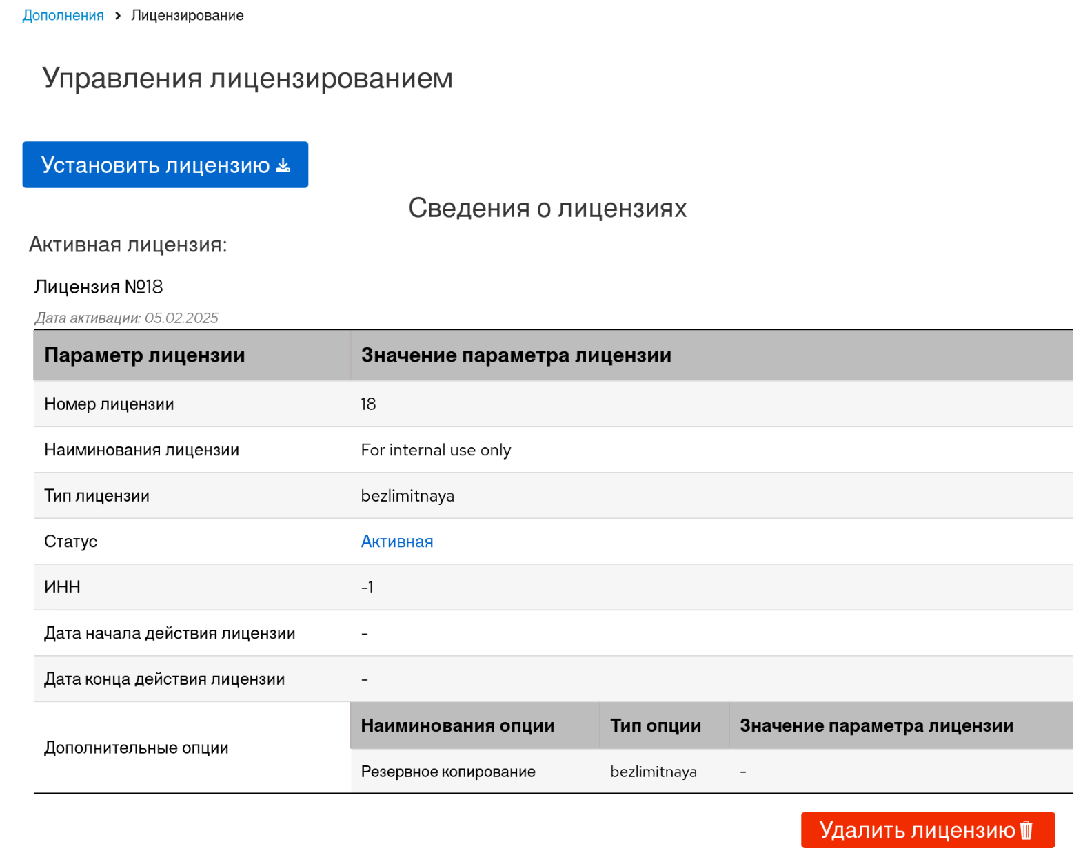 Рисунок 33 ‒ Информация об установленной лицензии в веб-интерфейсе