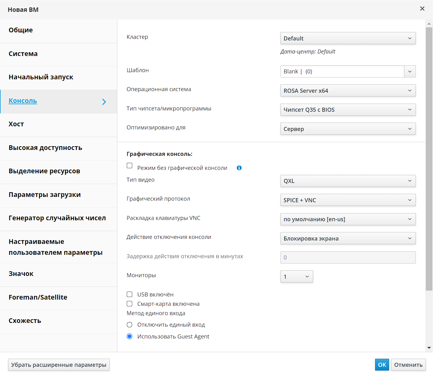 Рисунок 3 ‒ Параметры графической консоли новой ВМ