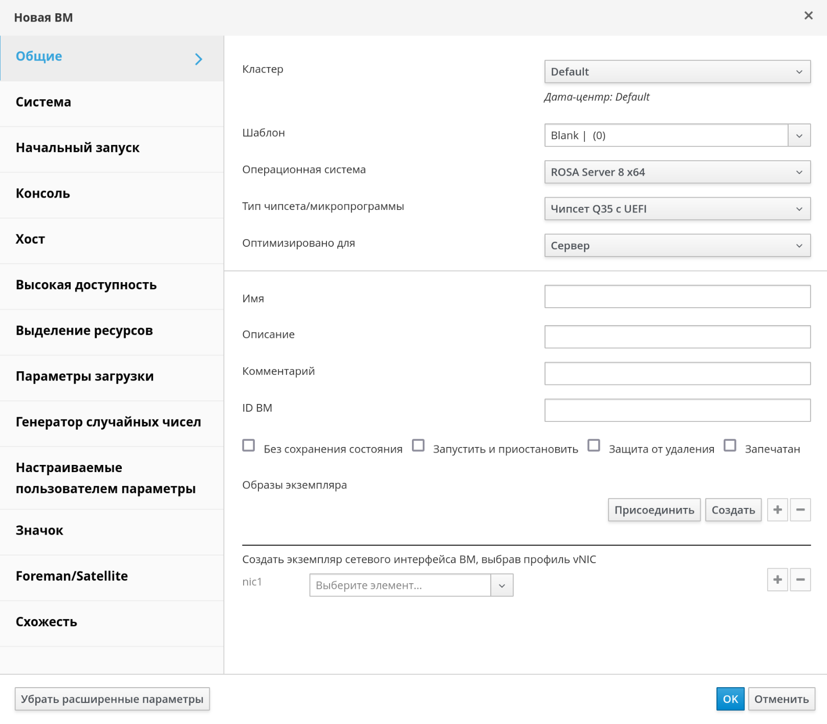 Рисунок 76 – Вкладка "Общие" окна "Новая ВМ"для создания новой виртуальной машины