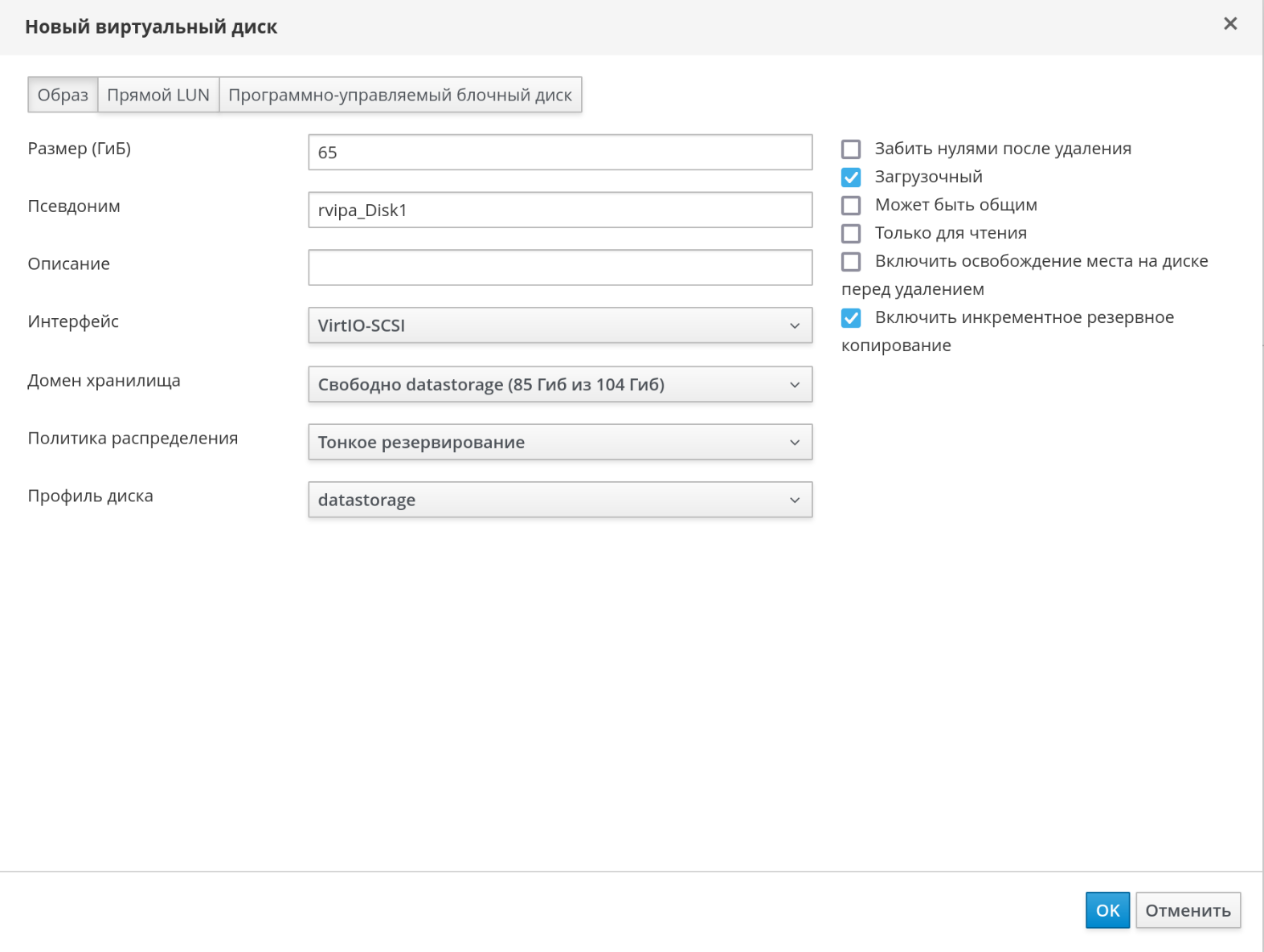 Рисунок 77 – Окно "Новый виртуальный диск"