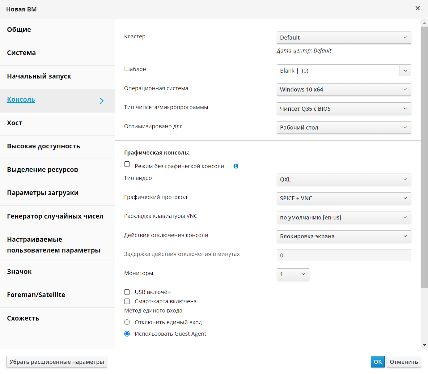 Рисунок 8 — Параметры графической консоли для новой ВМ для ОС Windows