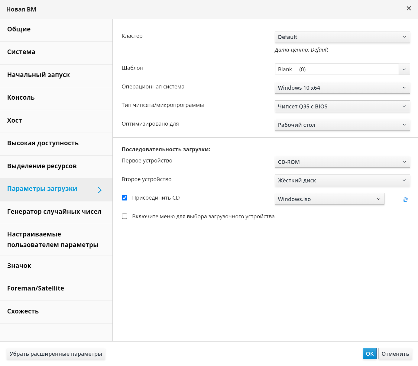 Рисунок 9‒ Параметры загрузки для новой ВМ для ОС Windows