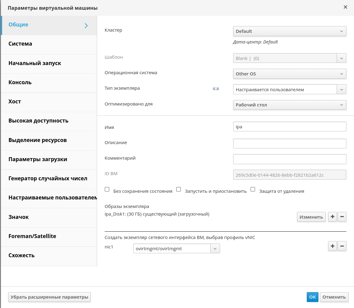 Рисунок 32 ‒ Общие параметры ВМ