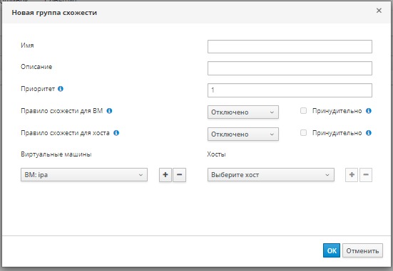- Указывает "Положительную" схожесть для "Схожести хостов", чтобы ВМ попытались работать на хостах с более высокими техническими характеристиками.