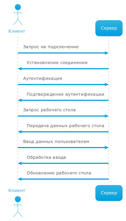 Схема взаимодействия между клиентом и сервером при использовании протокола RDP приведена на рисунке 6.