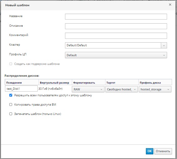 Процесс создания шаблона может занять продолжительное время (до 1 часа) в зависимости от размеров виртуального диска и возможностей аппаратного обеспечения хранилища.