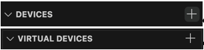 - выбрать необходимую область (нажать на окно "DEVICES" или "VIRTUAL DEVICES" для отображения UI-элемента "+"):