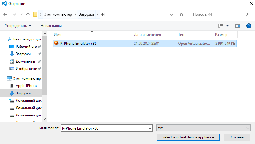 - выбрать директории с сохраненным образом для работы с виртуализатором (рисунок 59, рисунок 60);