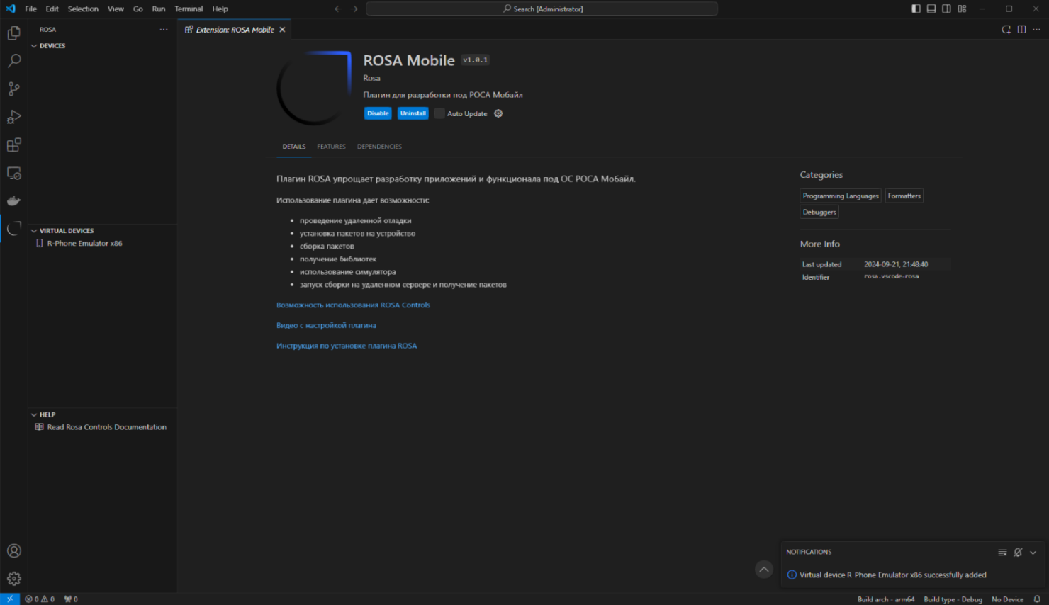 После ввода значений плагин начнет добавление устройства. После добавления устройства должно прийти специальное уведомление (рисунок 55):