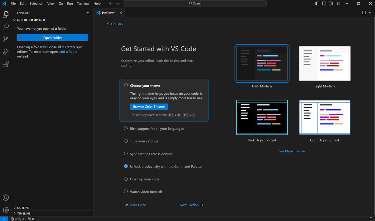 Рисунок 1 – Запущенный Microsoft Visual Studio Code в Windows