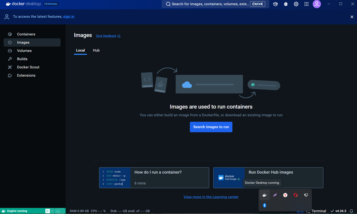 Рисунок 2 – Запущенный Docker Desktop в Windows