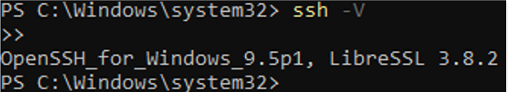 - проверить, что OpenSSH готов к работе с помощью выполнения команды "ssh -V" в консоли (рисунок 8);