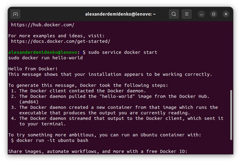 - проверить, что Docker daemon активен и готов к работе (рисунок 2);