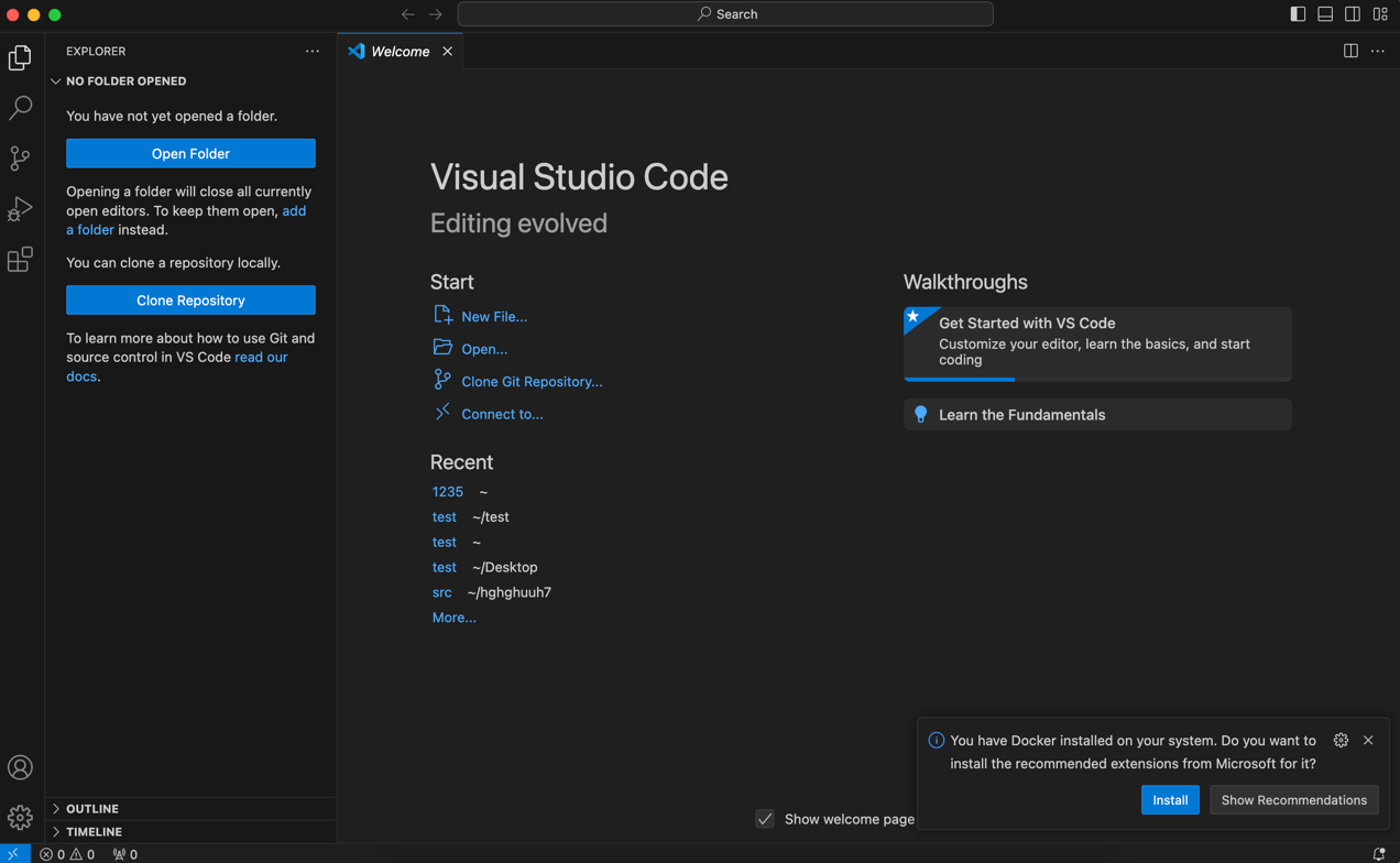 Рисунок 9 – Запущенный Microsoft Visual Studio Code в MacOS x64