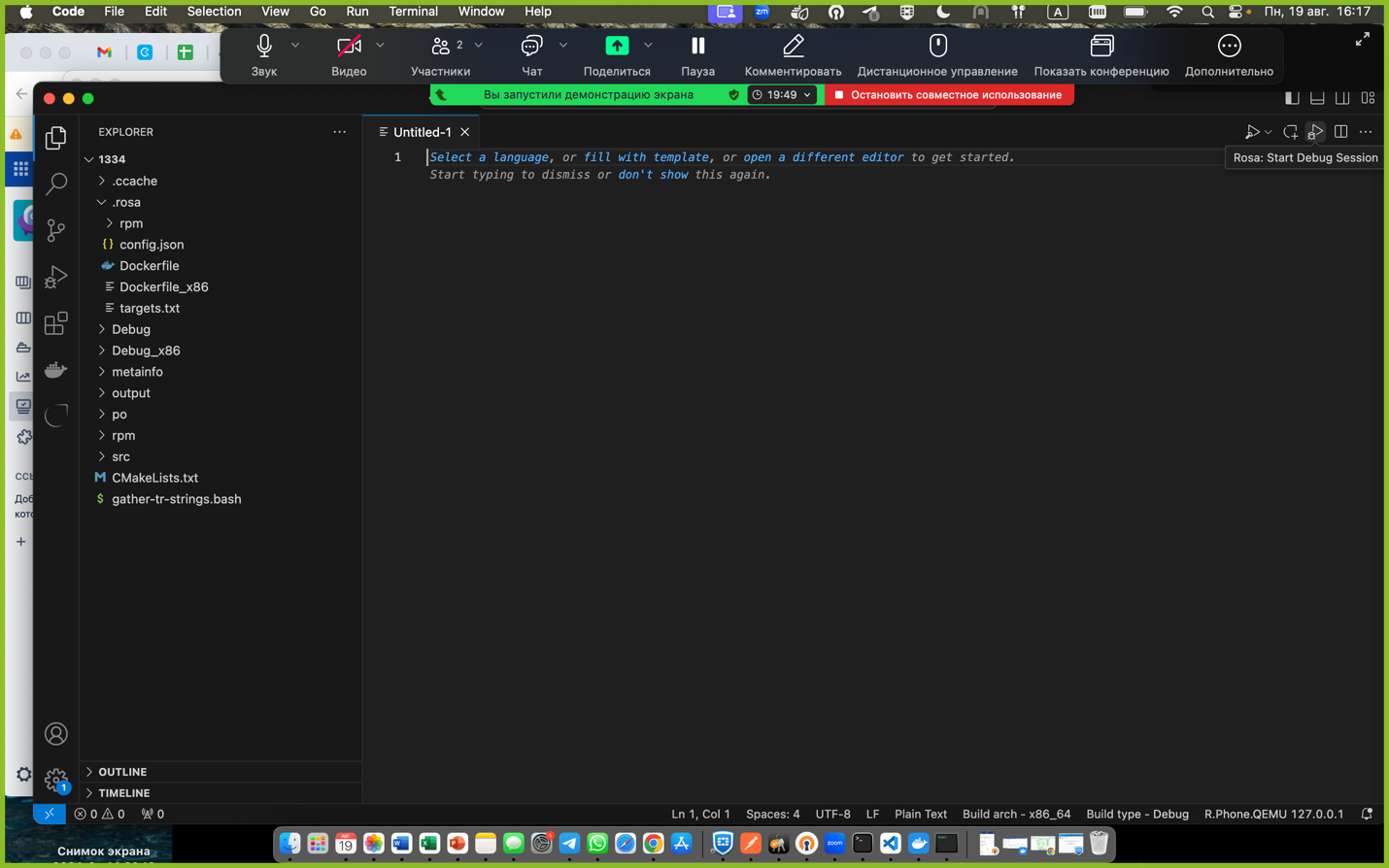 Рисунок 102 – Выбор "Rosa: Start Debug Session" в "Editor"-панели